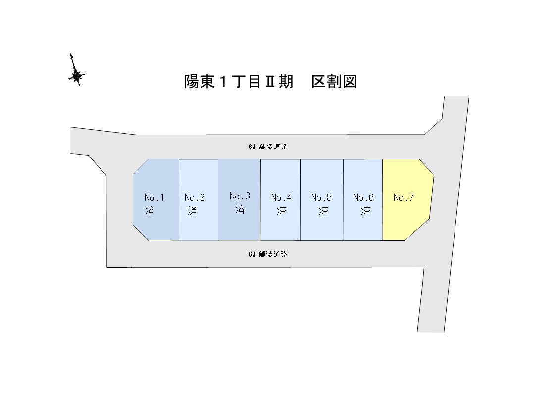 全区画50坪以上のゆとりある土地。分譲地内、東西南北6m道路!